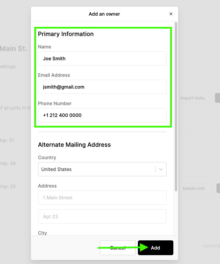 If you have multiple units and owners to add, you can do so by importing a spreadsheet of all data, rather than entering it one by one.