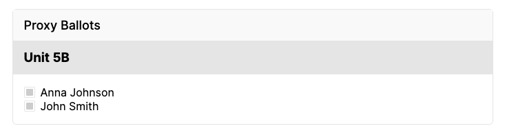 6) Si no se registraron directrices de voto, usted votará en nombre de la unidad que representa marcando la casilla que aparece junto a la unidad debajo del nombre del candidato.