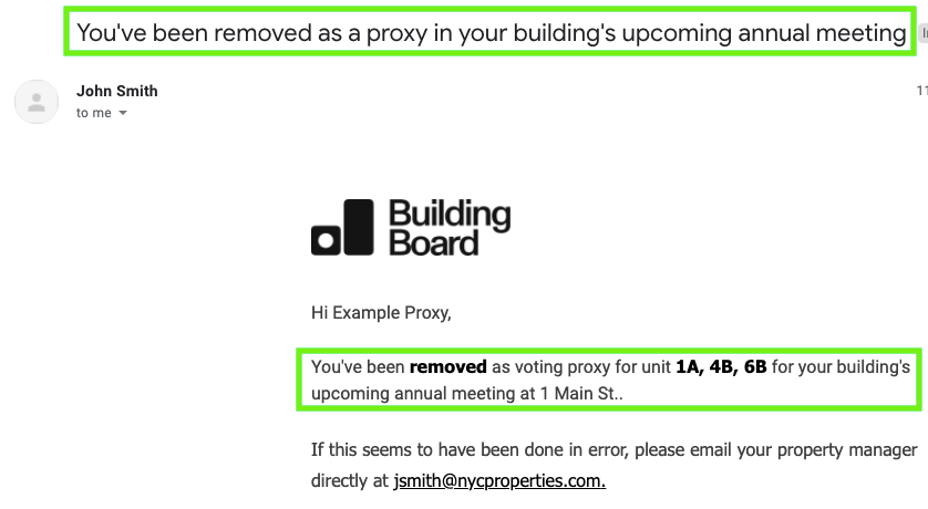 1) Si lo retiran como representante de otra unidad, recibirá la siguiente notificación por correo electrónico: