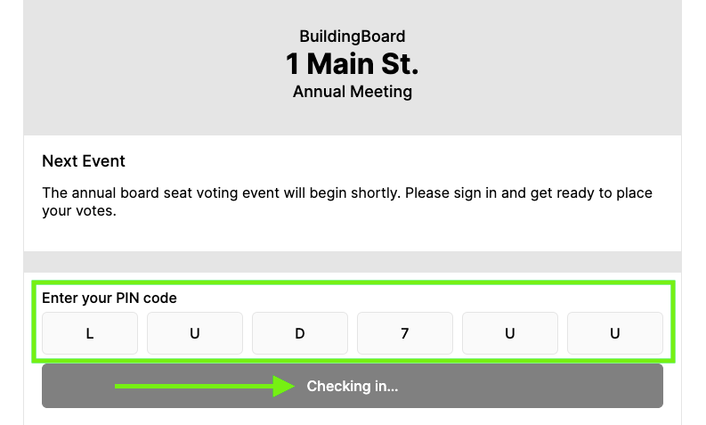 2) En el segundo aviso de reunión para iniciar sesión y votar, verá todas las unidades a nombre de las cuales usted va a votar. Esto incluye sus propias unidades, así como las unidades que lo han designado como representante.